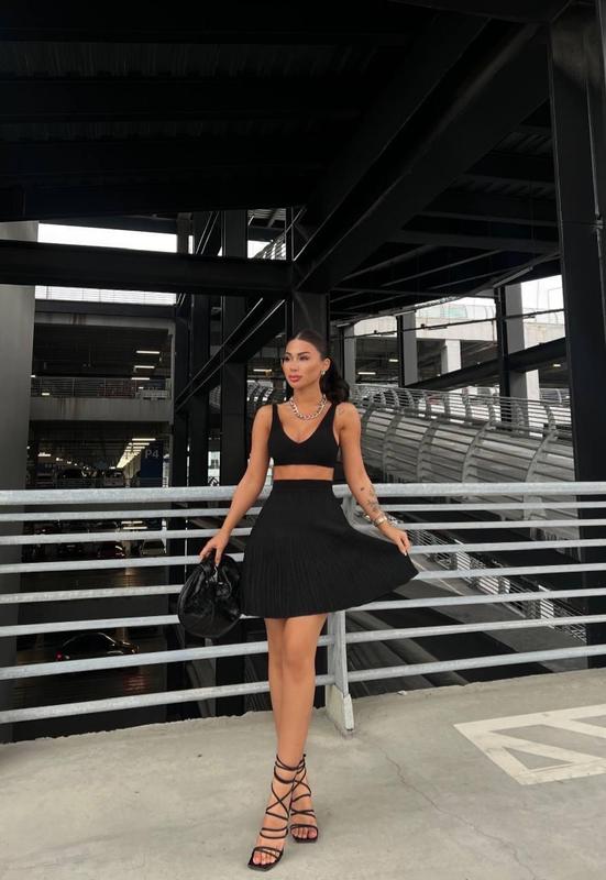 Жіноча спідниця, кльош, чорна, легка пряжа в полоску, міні