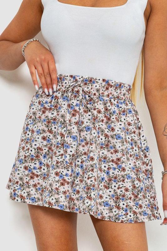 Шорти-спідниця з квітковим принтом, колір пудровий, 102r5256-1