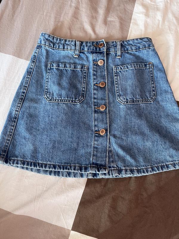 Джинсовая юбка с внушительным диффектом