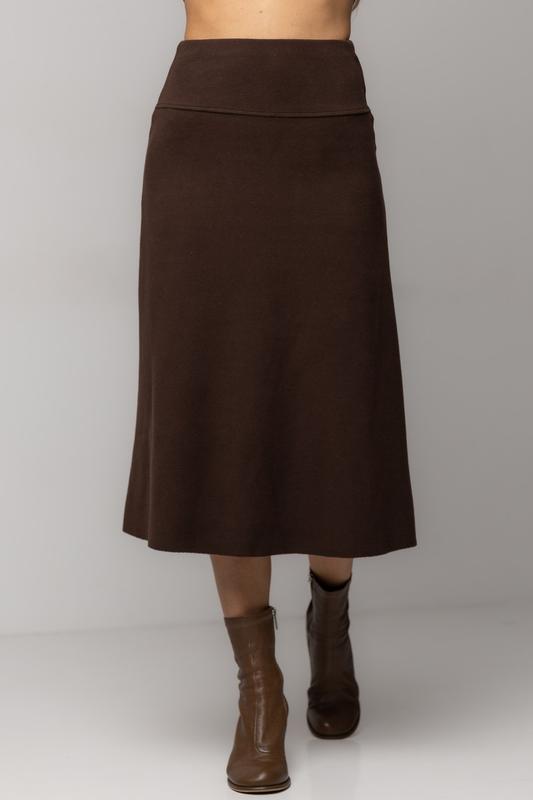 Спідниця-трапеція в рубчик довжиною міді - темно-коричневий цвет, s (є розміри)