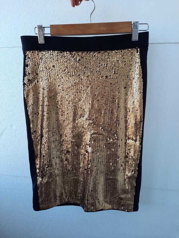 Ярка та вишукана юбка з паєтками,розмір М. Заміри: Пояс 37 см(тянеться до 40) Бедра 49(тянеться 53) Довжина 56