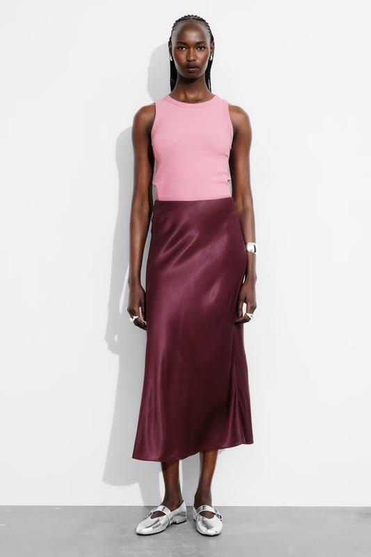 Нова, змійка збоку Середня довжина, розмір на М,L Гарний кірпічний колір Пів обʼєм в поясі - 36 см, Пів обʼєм в бедрах-48 см, довжина -77 см
