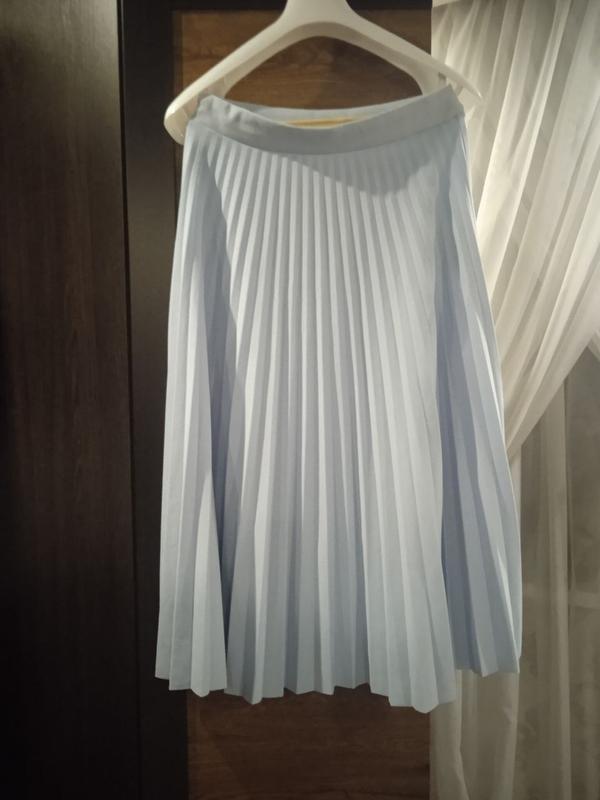 юбка нежно голубого цвета. Хорошо тянется. Талия на резинке в спокойном состоянии-Пот38, Длина 83.
