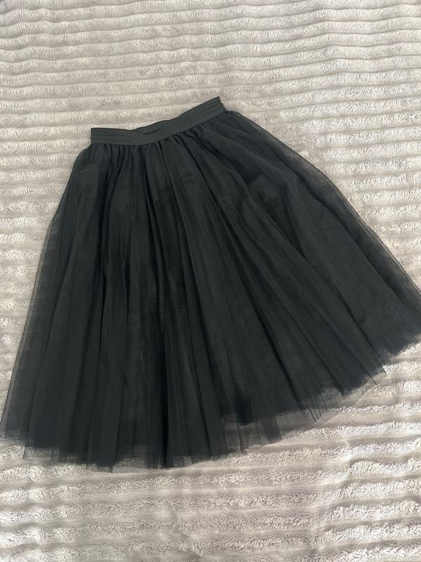 Фатин у два шари, підкладка з віскози, ширина резинки близько 5см. Довжину не можу заміряти. На мій зріст 168см, спідниця до середини ікри при високій посадці (орієнтовно метр). Дефектів немає