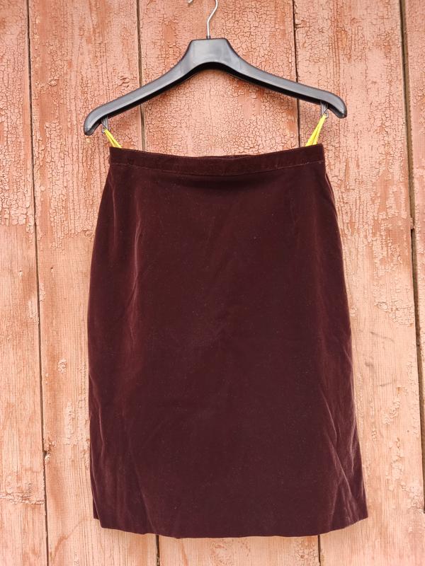 Оксамитова спідничка на підкладі. Вінтажний стиль, колір - темний шоколадний. Дефект на останньому фото Заміри: Пот - 37 Пос - 50 Довжина - 60 см
