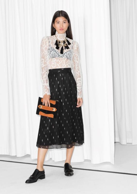 Шовкова чорна спідниця а-силует, зі срібним декором, міді & інші stories