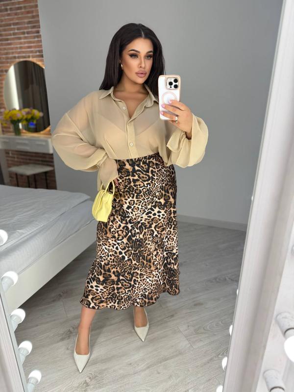 Новинка 💐 Код. 162 / Спідниця з принтованого шовку Армані «leopard». Сезон: весна-літо 2025р. Розміри: 48-50, 52-54, 56-58 Параметри по готовому виробу: ОТ / ОС / Довжина: 48-50: 72-8**********: 8**********-58: 88-96/140/88 Тканина: легкий шовк «Армані» середньої щільності. Кольори: - Лео принт з білим - Лео принт з коричневим Легка спідниця з еластичним поясом на гумці. З виксокою посадка, розкльошена по низу, гарно спадає. P.S. на моделях розмір спідниці 52-54