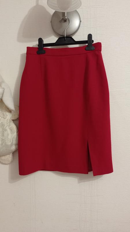 Дуже гарна спідничка, якісна вовна, підкладка - поліестер. Бірок ніяких нема, яале я гарантую, вже такий досвід, що безпомилково вовну відрізняю, особливо якісну) Стан бездоганний, чудовий темний відтінок червоного. Розмір приблизно М. Талія - 36, стегна - 50, довжина - 57.
