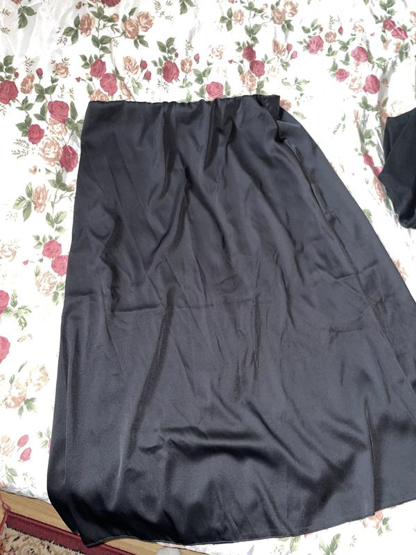 жіноча шовкова спідниця , чорного кольору , довжина міді