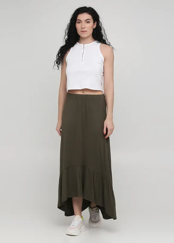 Спідниця Reserved Хакі Стиль Кежуал Висота посадки Середня талія Довжина виробу Максі Фасон А-силует Тип кишень Без кишень Крій Асиметричний, На резинці Декор Оборки Фактура Гладка Застібка Без застібки Країна виробництва Туреччина Країна бренду Польща Розмір 40 Матеріал Трикотаж, Віскоза