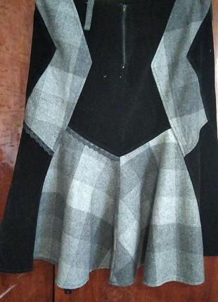 Теплая юбка из вельвета и в клетку вставками из шерсти. Идеальное состояние. Дов.63см., талия 36см., бедра 49см.