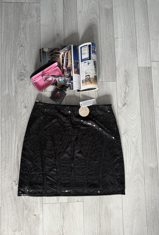 Класна спідниця Apricot Розміри : Довжина виробу - 43 см. ; Півоб'єм стегон - 49 см. ; Півобхват талії - 38 см. (тягнеться до 44 см.). Є незначний косметичний дефект (розпоролось із внутрішньої сторони пояса).