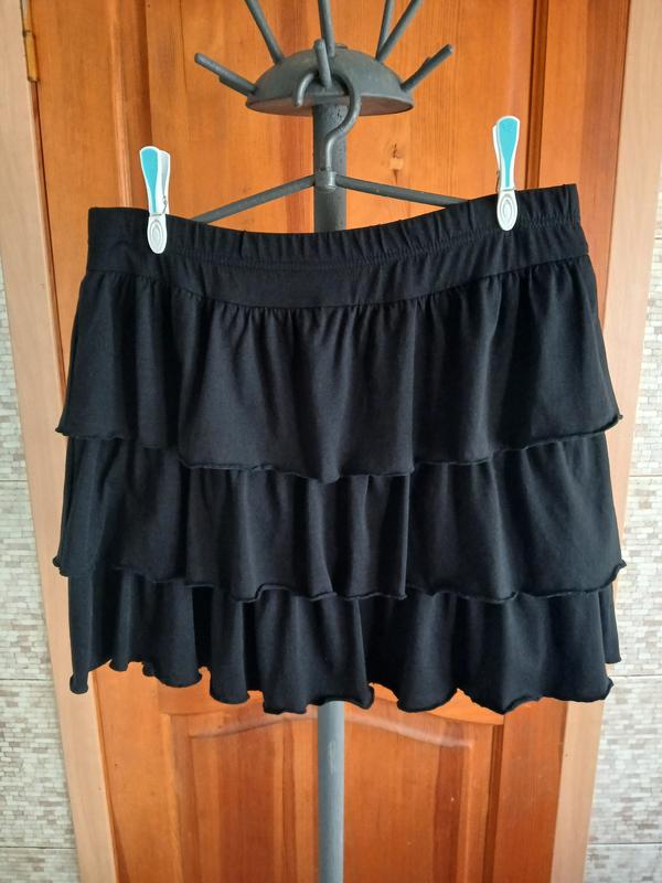 Юбка женская бренда IN EXTENSO, размера 40/L/48 черного цвета в стиле "ламбада", в идеальном состоянии, без нюансов.Замеры на фото: ширина поясу - 40 см.(резинка добре тягнеться) длина - 44 см.