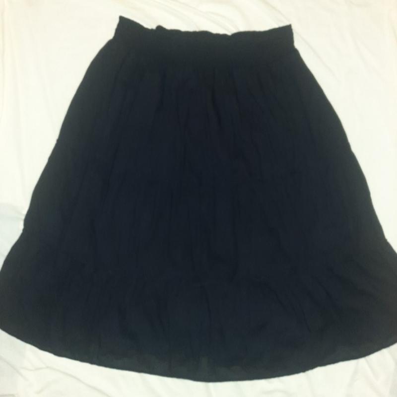 Чорна ярусна легка спідниця, натуральний склад, пояс - широка резинка, розмір 44: ПОГ - 46см в спокійному стані та тягнеться до 66см , ПОБ - 75см, довжина - 78см