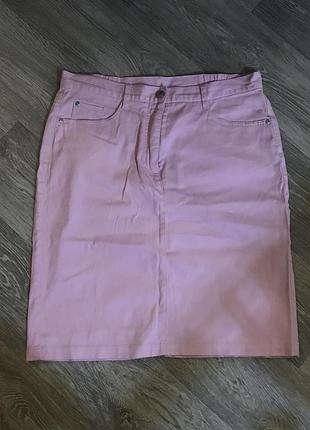 Розовая не очень плотная юбка средней длины, большой размер, талия немного на резинке