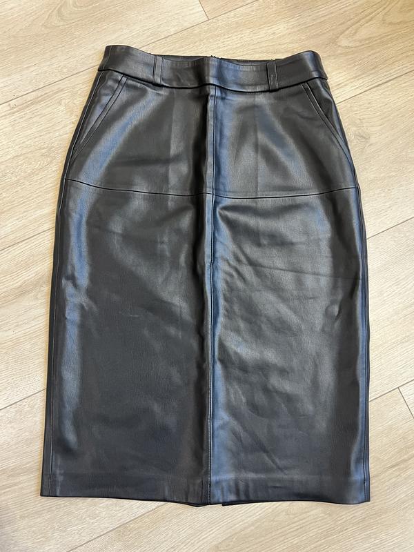 Спідниця з еко-шкіри чорного кольору в ідеальному стані. Mango, розмір XS - S.