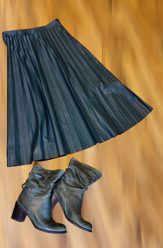 Дуже зручна, з якісного, м'якого шкірзаму спідниця. Довжина 82см, напівобхват в талії 36,5см. Без нюансів, стан нової.