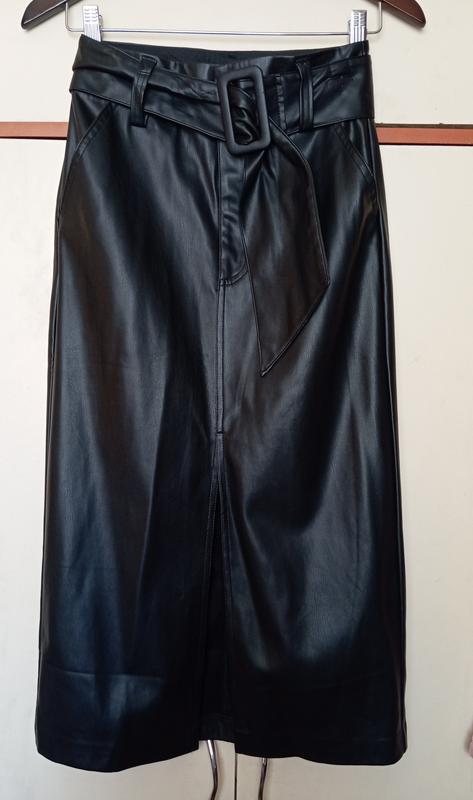 Класна спідниця-олівець із розрізом спереду, на блискавці та кнопці, має бокові кишені та пояс. Розмір XS. Довжина 78 см, ПОТ 33 см, ПОС 45 см. Дуже тепла та приємна до тіла, матеріал- єко шкіра, трохи тягнеться. Стан ідеальний. Одягала 1 раз на фотосесію.