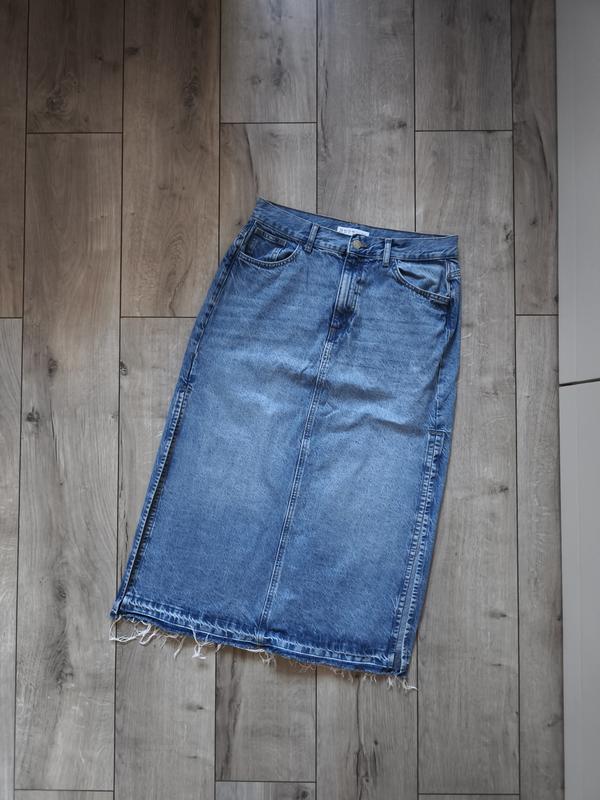 гарнюща спідниця з щільного джинсу з розрізами в стані нової речі розмір 14