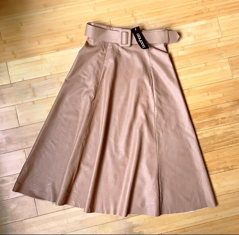 Стильна шкіряна(замінник) спідниця-міді з поясом,відмінної якості та крою.Заміри дивіться на фото