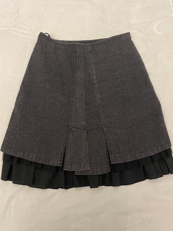 Джинсова спідниця сіро-чорного кольору. Бренду SELA . Розмір s-m. Рекомендую до придбання. Довжина 53 см Ширина по поясу 38 см На підкладі