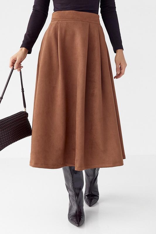 Замшева пишна спідниця довжини міді мод 14324