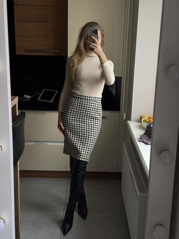 Стильная шерстяная юбка гусиная лапка клетка юбка карандаш