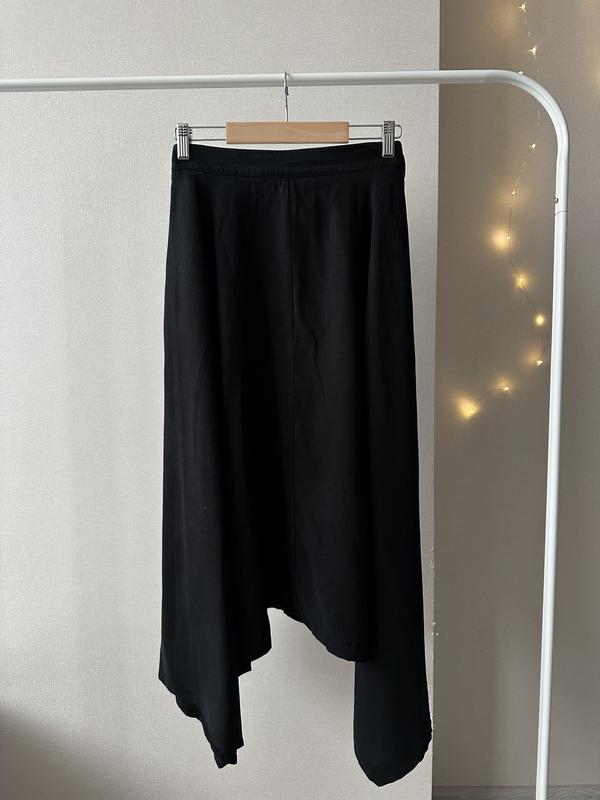 Saint+Sofia Чорна асиметрична спідниця кльош Стан чудовий ――――――― розмір L по пояс 42 по стегна 65 довжина 69/95 ――――――― віскоза
