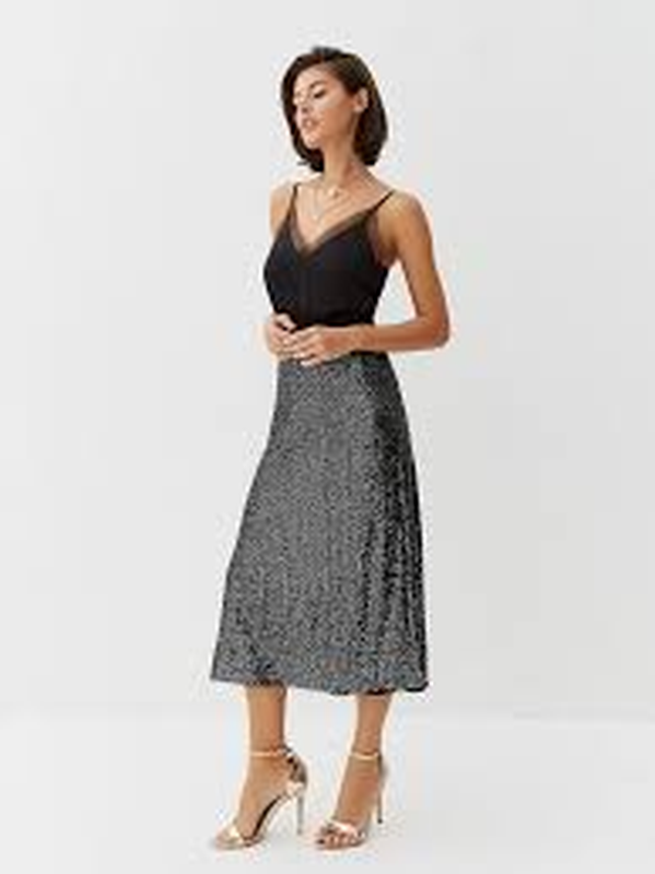 Спідниця міді А-силуету в паєтках колір сірий туманний графіт від M&S Collection розмір L XL довжина 88 см ПОП 42см-44 см+ ПОБ 60 см+ 100% поліестер підкладка по всій довжині-м'якенька,еластична,приємна тактильно паєтки густо пришиті по подолу НОВОГО СТАНУ