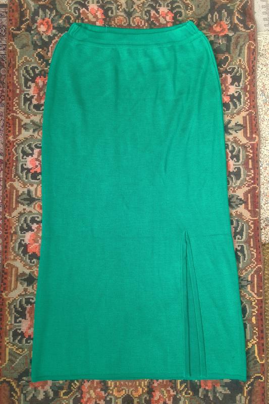 Нова трикотажна спідниця, на резинці, з підкладкою та розрізом. Віскоза-акрил. Матеріал плотний, трохи шовковистий. Розміо М-L, заміри на фото.