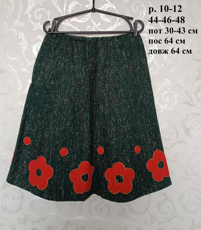 р 10-12 / 44-46-48 зеленая теплая юбка трапция с аппликацией в украинском стиле ручная работа * Замеры в ровном виде и максимально потянув на фото. * В идеальном состоянии. Ручная работа. Пересылаю Укр или Новой почтой с полной подпиской на карту Приват
