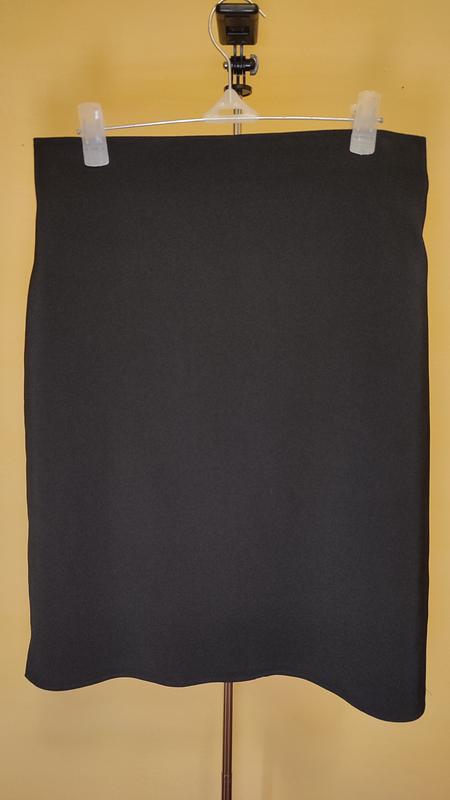 Офісна пряма спідниця чорного кольору Не тягнеться Довжина - 48см ПОС - 41см Ширина поясу - 32см Стан - ідеальний Має позаду приховану акуратну блискавку та по боках невеличкі розрізи Також має лямочки для вузьково поясу