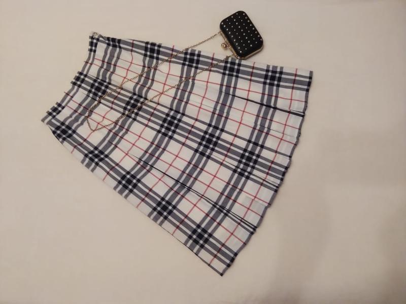 Спідниця британського бренду GIR'RAY в клітинку і складки. Супер якість пошиття. Клітинки по боках співпадають. Основний колір молочний. Тканина не дуже щільна, добре тримає форму. Стан нової. Без Бірки. Без нюансів. Складки однакові і спереду, і з заду. Складки застрочені 18,5 см від пояса. Пот: 38,5 см Пос: 54 см Довжина:76,5 см Ширина пояса: 3,5 см