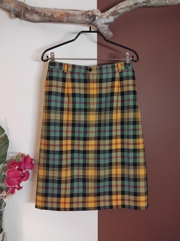 Шерстяная юбка в клетку тартан с карманами женская винтаж
