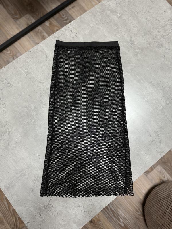 Чорна спідниця сіточка напівпрозора черная полупрозрачная юбка сеточка миди міді