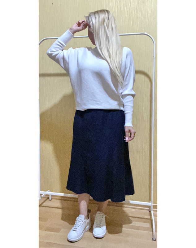 Стан як нова. Натуральна спідниця від Julipa темно-синя міді за коліно довга. Клиньями. Льон, віскоза, бавовна. --- Довжина 71 см, Талія ПО 58-68 гумка, стегна ПО 72 см. На фото надіто на параметри 97/80/103, зріст 160 см. Дуже велика. Пристібала ззаду. —- Без дефектів, без нюансів, як нова. --- Безпечна оплата, Нова пошта, Укрпошта, особиста зустріч у Києві, наложка з передплатою за послуги пошти в один кінець. Повернення приймаю (послуги пошти за рахунок покупця).