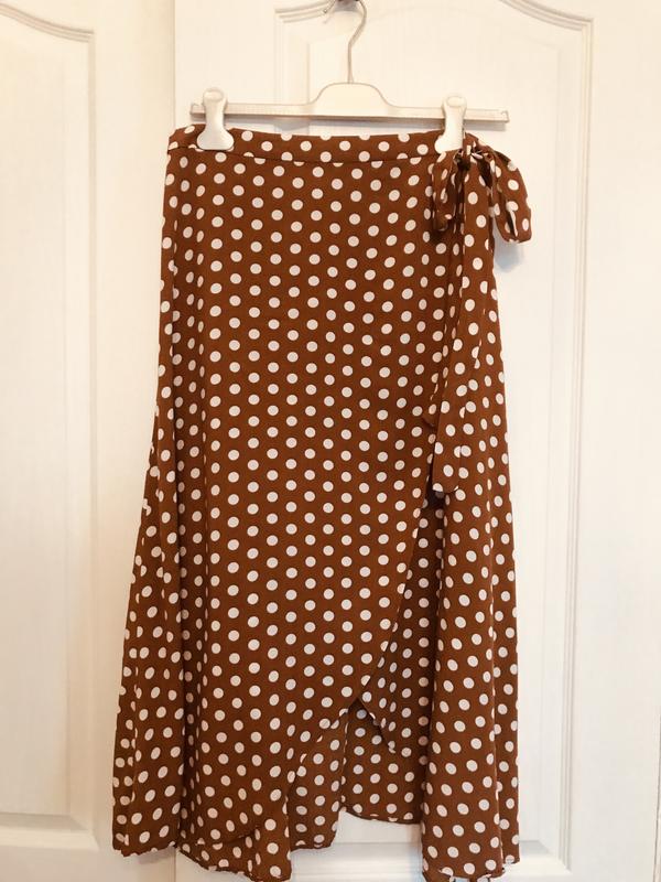 Дуже красива спідниця на запах бренд Mango В розмірі L От-40( можно регулювати ) застібається на ґудзики і пояс Довжина -85 Якість 100% хлопок В красивому модному коричневому кольорі