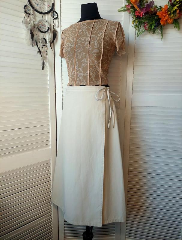 Юбка миди на запах а силует трапеция светло бежевая оливковый цвет
