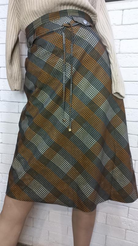 Гарна,стильна, у клітинку, спідниця міді, на підкладці, висока посадка