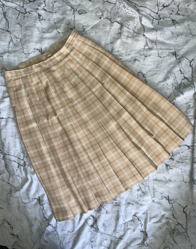 Стильна спідниця міді в бежевому кольорі з елегантним клітчастим принтом. Характеристики: • Розмір: M • Довжина: 68 см • Напівобхват талії: 40 см • Колір: бежевий з білими лініями • Стан: ідеальний Класичний крій міді з плісированими складками створює жіночний силует. Клітчастий візерунок додає образу елегантності та універсальності. Підходить для створення як повсякденних, романтичних і елегантних так і офісних образів. Ідеально поєднується з блузами, светрами та топами різних кольорів.