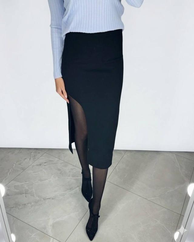 Спідниця Модель 376/1376 Ціна 570 грн Розмір 42-44, 46-48, 50-52, 54-56 Тканина костюмний тіар, висока якість, ідеальна посадка Трендова спідниця з розрізом по ніжці, довжина міді. Пояс ззаду на резинці, що дозволяє регулювати об'єм талії, збоку застібка-потайна блискавка Колір чорний Довжина спідниці 76/77/78/79 відповідно до розмірів. СУПЕР ЦІНА І ВІДМІННА ЯКІСТЬ