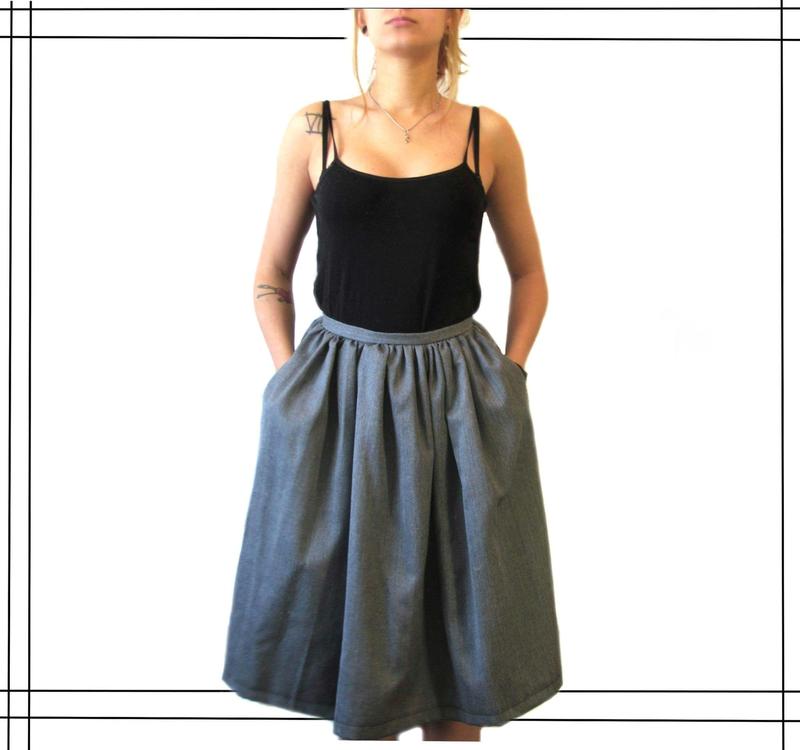 Спідниця міді, тканина котон з домішками шерсті, є дві кишені в швах, розмір s, на талії 58-64см, зверху гудзик.