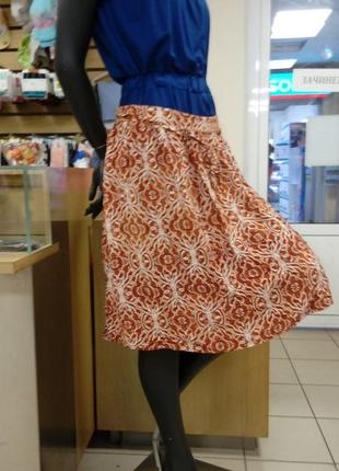 Спідниця жіноча, річна, легка, міді Широка спідниця в збірку, ззаду на резинці, шнурку, з приємного віскозного волокна. Код товару 10152/10153 Виміри для UA 44 (EUR 38): ПІТ 37 см, Довжина 63 см