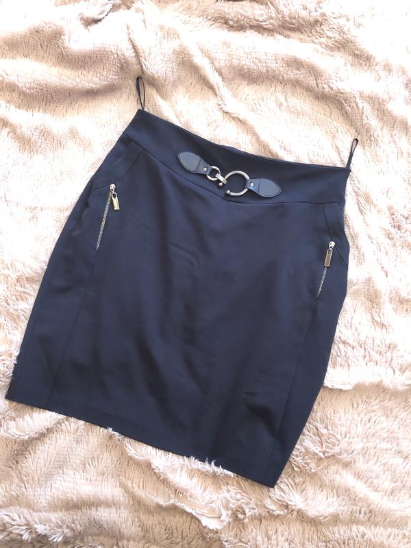 Спідниця Orge прямого крою на поясі виконана з щільної костюмної тканини з додаванням еластану по боках кармані. Застібається на блискавку ззаду . Стрейчева віскозна підкладка, розмір 44