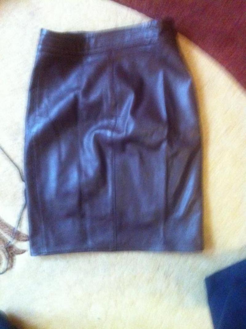 Очень красиво сидит на фигуре. Кожа. Размер 10. Подойдет на М-Л.
