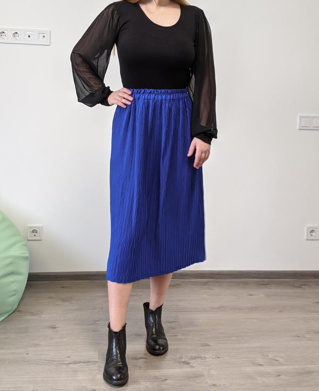 Лёгкая юбочка миди длины , цвета ультрамарин с оригинальной мини плиссировкой. очень приятная холодящая ткань Размер М- Л Состояние идеальное