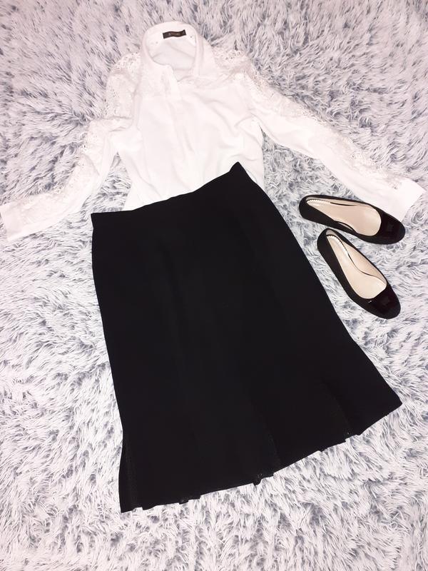 Спідниця в дуже хорошому стані, без нюансів. Є підкладка. Внизу спідниці розрізи з ажурними вставками. Довжина 68, ПІТ 41,5, ПОБІДИ 55, висота розрізів 17 див. Тканина не тягнеться. Перешлю.