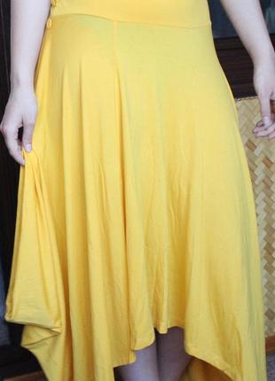 Яскрава літня спідниця з якісного трикотажу. Оригінальний фасон (боковый фалди можна впливати на ґудзик або ж опускати), чудова якість, ідеальний стан. Сфотографована в неглаженном вигляді, оскільки із-за безлічі виставлених речей немає часу, все переглаживать (прошу вибачення). ПІТ - 35 см (в нерозтягнутому стані, тканина добре тягнеться). Довжина по передньому краю 67 см, Бічна довжина по максимуму (отстегнутый варіант) 105 см. Ширина резинки - 9 див.