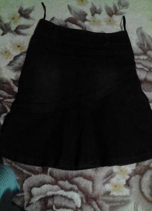 Спідниця джинсова. Дуже класна. Кльош. Колір Темно-сірий. Ближче до чорного. Єдиний мінус - це собачка. Відлетіла висюдька. А так працює. Розмір - 44. Заміри: довжина - 52см, ПОТ - 36см, ПОБІДИ - 45см.