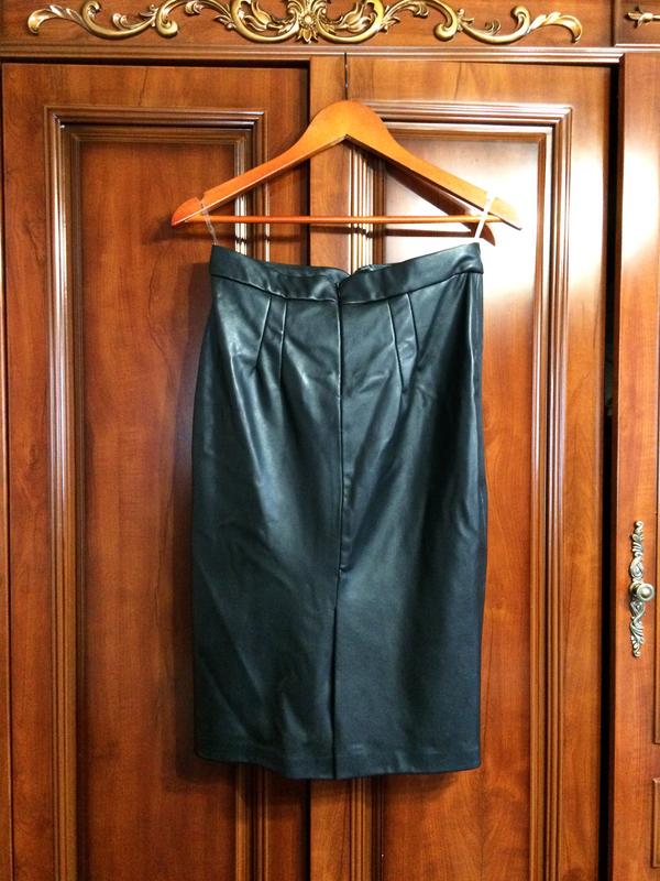 Спідниця приталена, середньої довжини, із екошкіри. Ззаді з розрізом. Розмір S/М Піт - 39 см Поб - 46 см Довжина спідниці - 65 см
